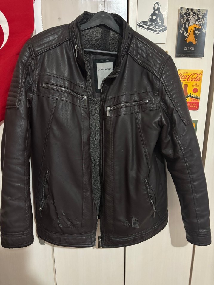 Siyah deri biker ceket, fitted kesim, notched yaka ve uzun kollu. Tokalı detaylı, midi boyda, günlük rahat kullanıma uygun.
