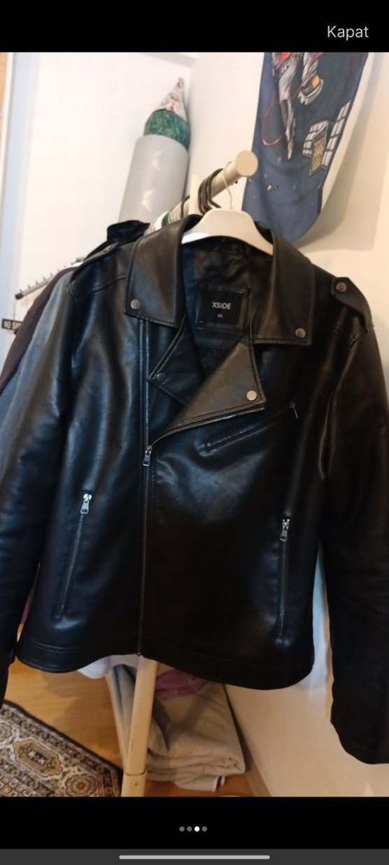 erkek Siyah Deri Biker Ceket