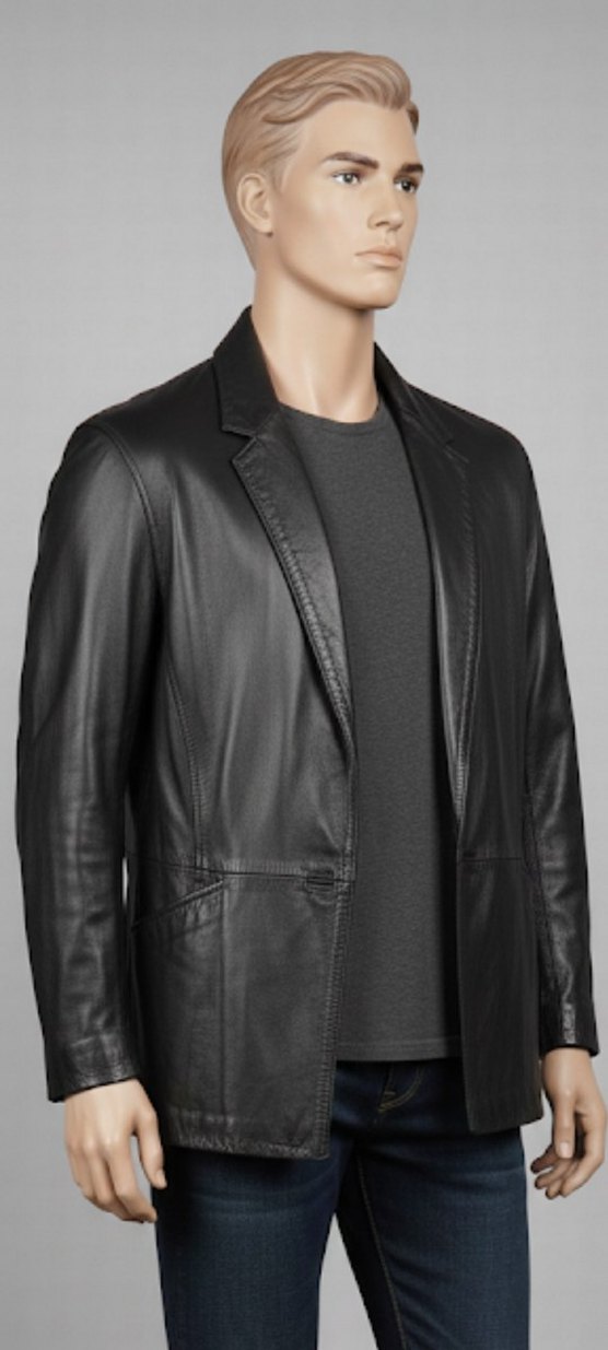 Erkek Siyah ( Deri )Düğmeli Ceket