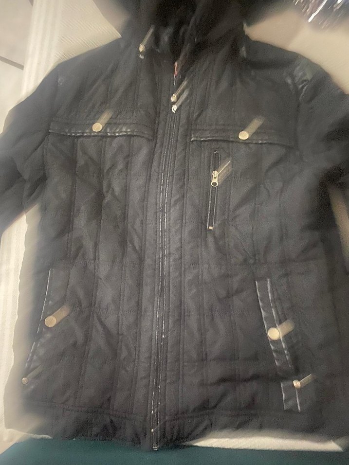 Erkekler için siyah deri ceket, düğmeli ve kesimi vücuda oturan. Uzun kollu, midi boyda, günlük ve sokak tarzına uygun.