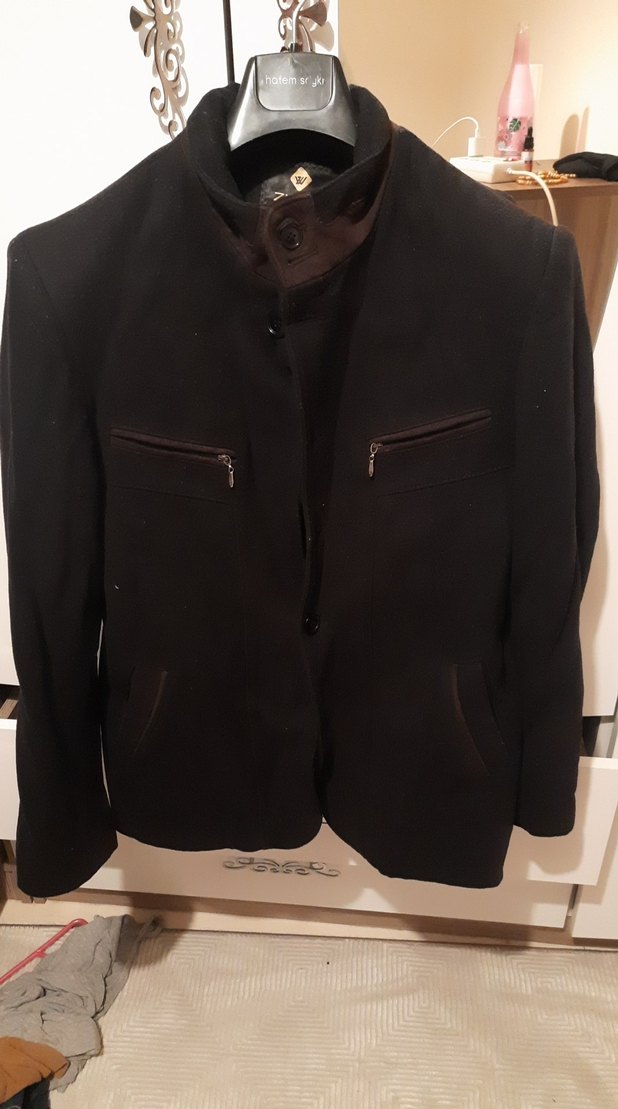 Erkek siyah deri kısa kesim ceket, kesik yaka ve fermuarlı ceplere sahiptir. Düzenli kesim, uzun kollu ve ofis ile sokak tarzına uygundur. boy 75 santim sadece 2 düğmesi düşmüş cebinde dikilecek sorunsuz