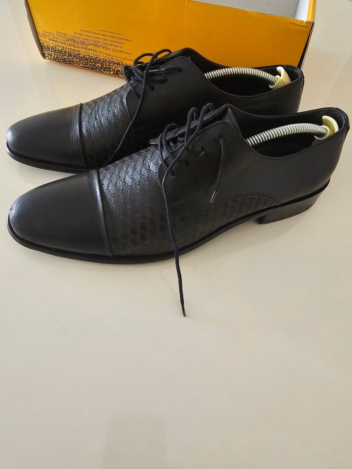 Siyah deri, yılan deseni dokulu, bağcıklı erkek klasik ofis ayakkabısı, modern şıklık sunar.