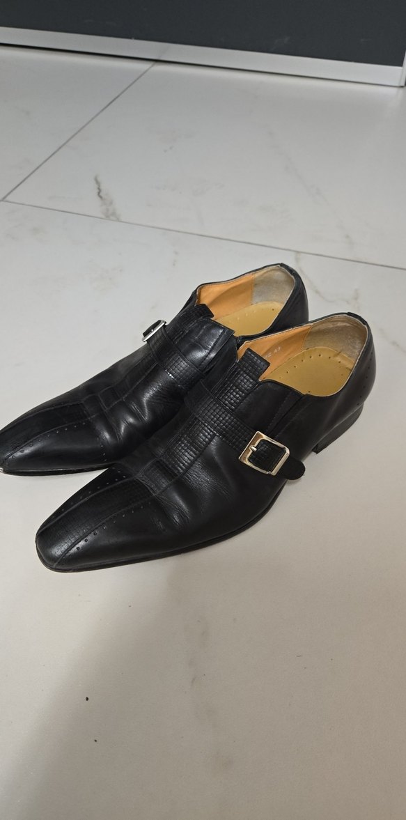 Siyah deri erkek klasik tokalı ayakkabı, koyu renkte ve deseniz, goth tarzıyla ofis kullanımı için uygun. Yurt dışından geldi
