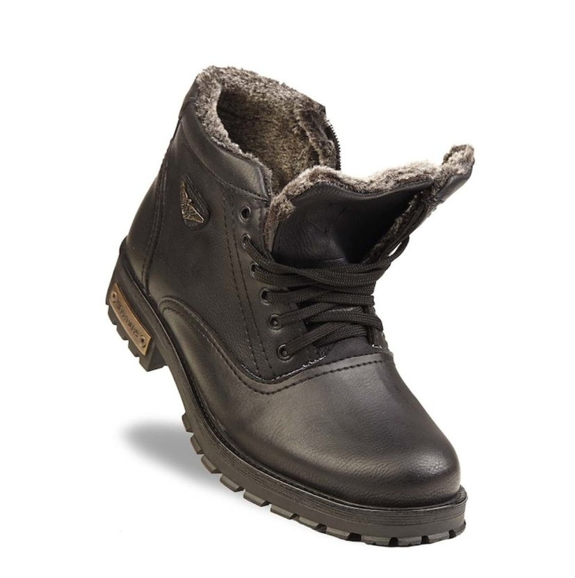 Siyah deri biker tarzı erkek bot, içi gri kürklü ve rahat. Günlük kullanıma uygun, trend casual stilinde. sınırlı sayıda kaldı 42 ve 41 numara kaldi