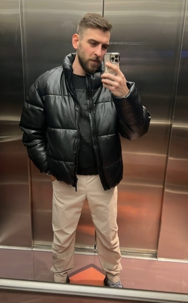 Erkek Siyah Deri Puff Mont, Bershka Oversıze M/L