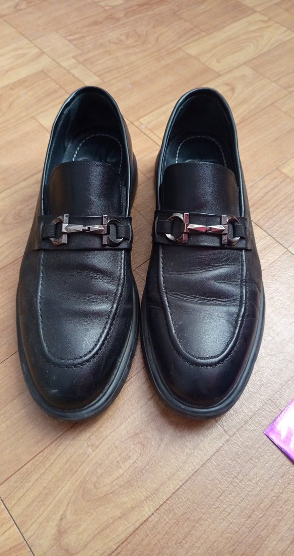 Siyah parlak deri, tokalı erkek klasik ayakkabı. Desensiz ve ofis kullanımı için uygun. Az kullanılmıştır