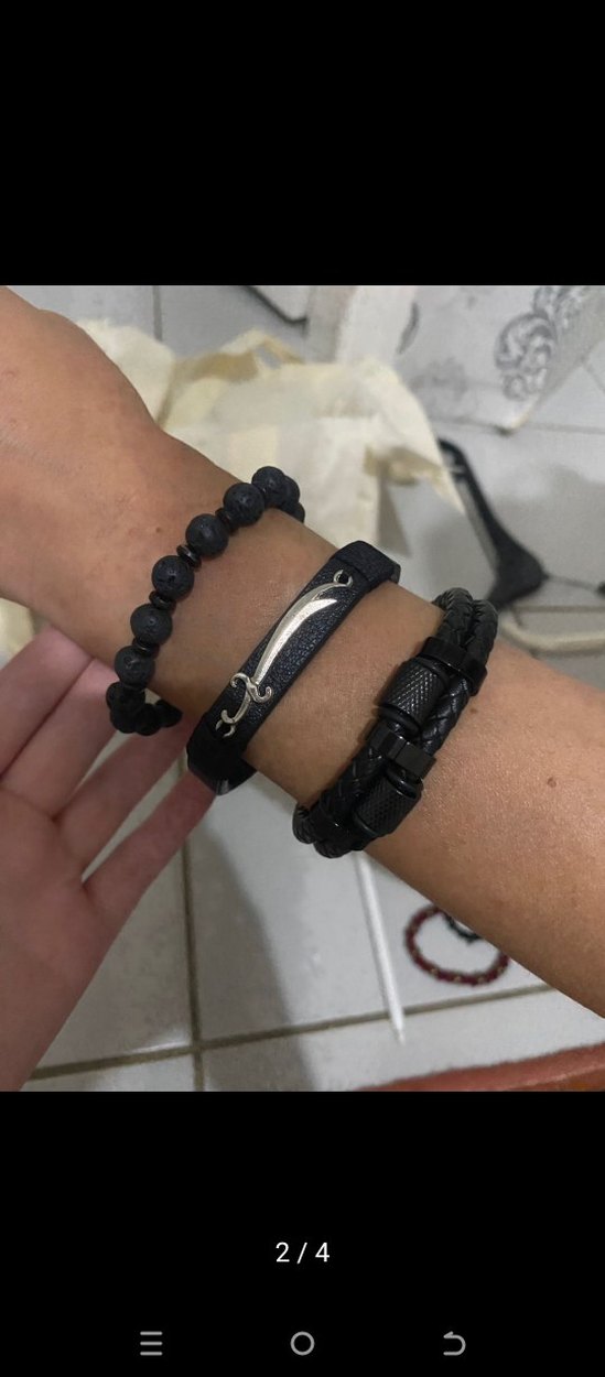 Siyah renkte, deri ve boncuk detaylı üçlü erkek bileklik seti, minimal ve rock punk tarzını yansıtıyor.