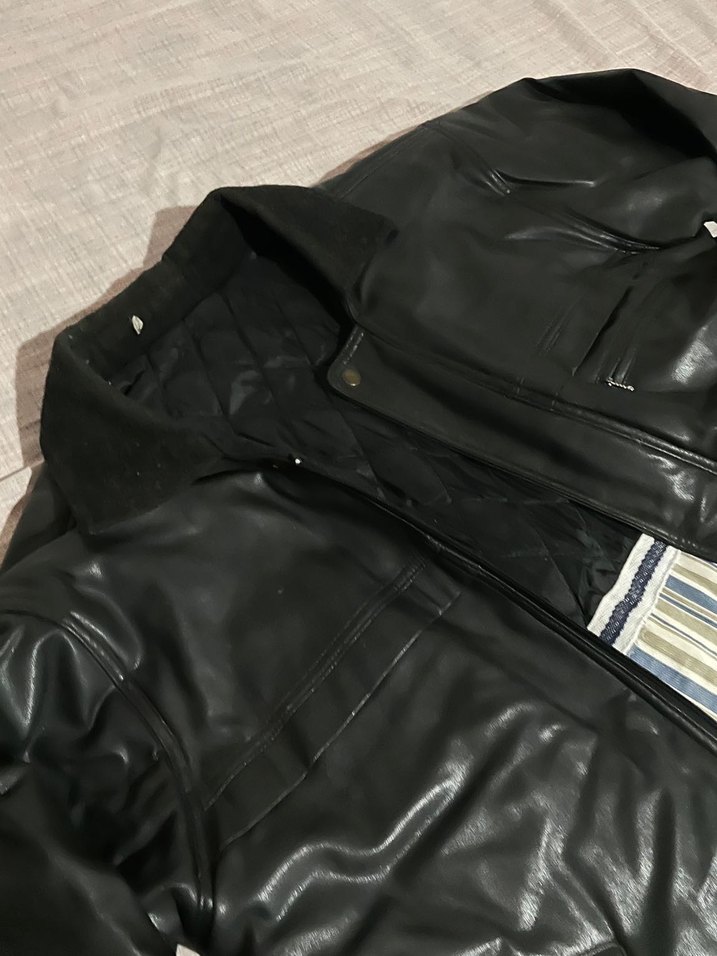 Erkek siyah deri ceket, Normal kesim, uzun kollu günlük ve sokak stiline uygundur. Temiz kullanıldı