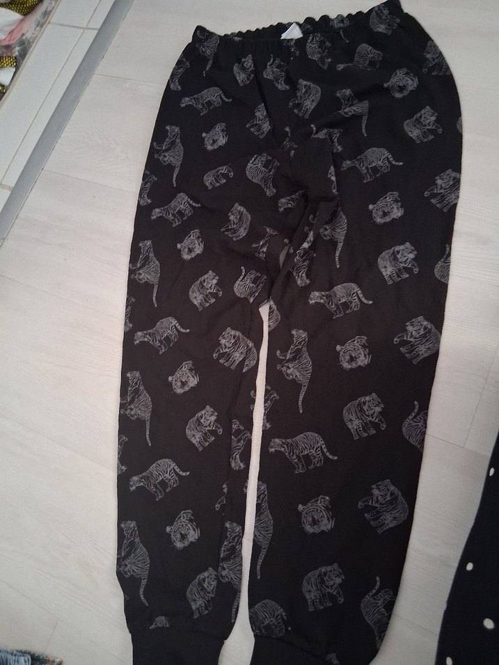 Erkekler için siyah, kaplan desenli, elastik bel bantlı rahat pijama altı, sokak giyimine uygun 12 14 yas yenı gibi sayılı giyildı