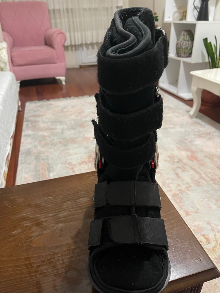 Siyah, kayışlı tokalı, diz üstü. Koyu ve desensiz, lastik görünümlü malzemeden yapılmıştır. Pazarlık payı vardır az kullanıldı 42.5 numaraya kadar giyilebilir