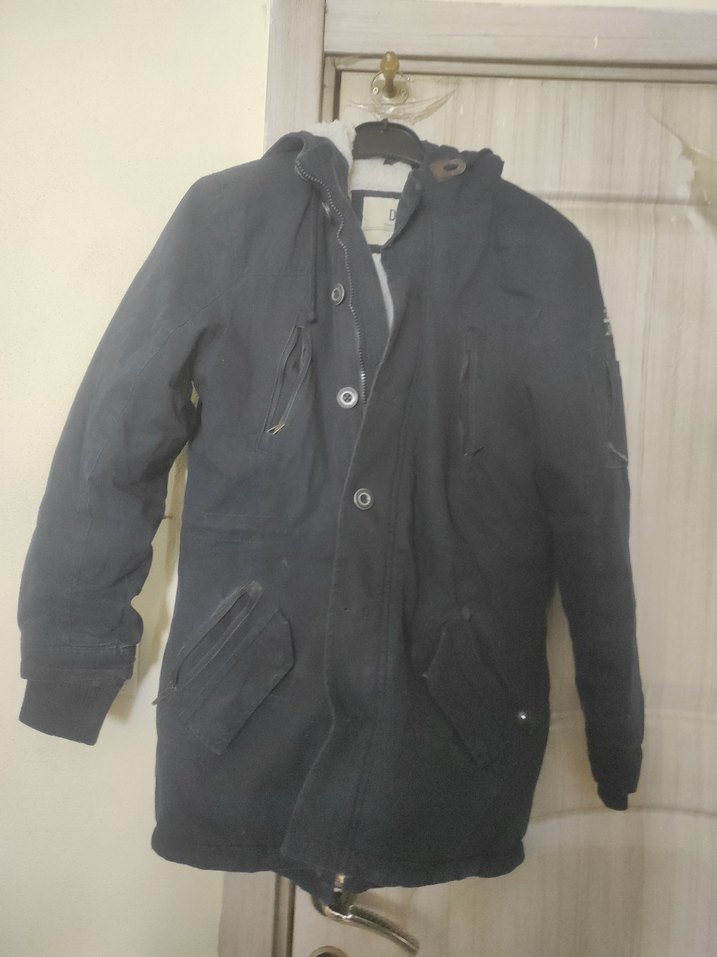Erkekler için siyah düğmeli midi mont, kesik yakalı ve uzun kolludur. Yumuşak fleece kumaştan, rahat kesim ve sokak stili için uygundur.