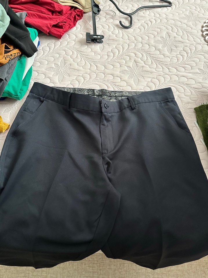Siyah renk, düğmeli, regular fit, midi boy ofis pantolonu. Sentetik kumaştan yapılmış, sade ve iş ortamına uygun.