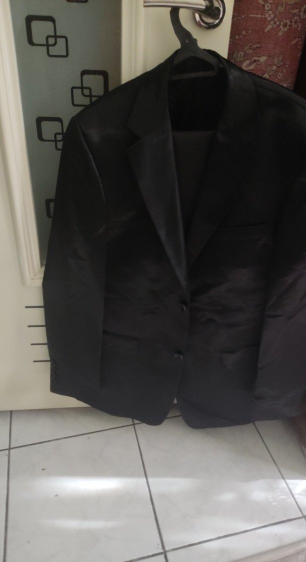 Erkek Siyah Düğmeli saten Takım Elbise