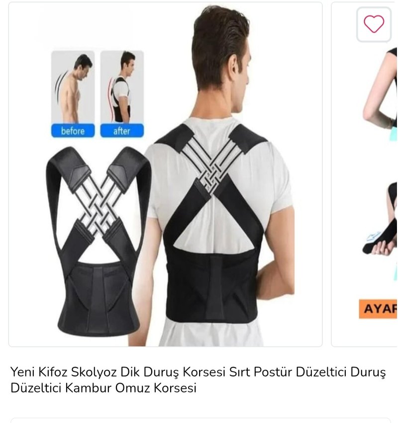 Ayarlanabilir askıları ve destekleyici sırt paneli ile kamburluk ve duruş bozukluğunu azaltan siyah-gri erkek duruş düzeltici korse.