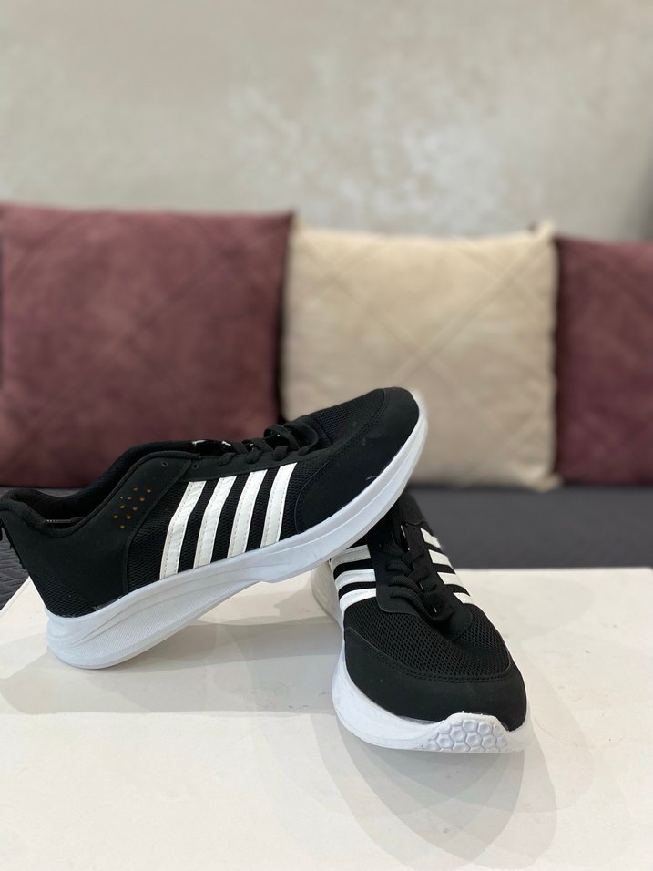 Siyah elastik detaylı erkek spor ayakkabısı, beyaz zebra desenli çizgiler ve kauçuk taban ile spor ve günlük kullanıma uygun.