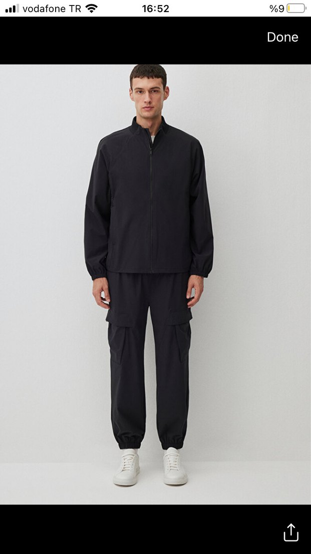 Erkekler için siyah, uzun kollu, yüksek yakalı ve normal boyda yumuşak ve sıcak kumaştan üretilmiş rüzgarlık. Dış mekan kullanımı için uygundur.Altıda lastikli paçadır.Ürünün altı büyük geldiği içi satıyorum,hiç kullanılmadı,etiketleri üstünde.