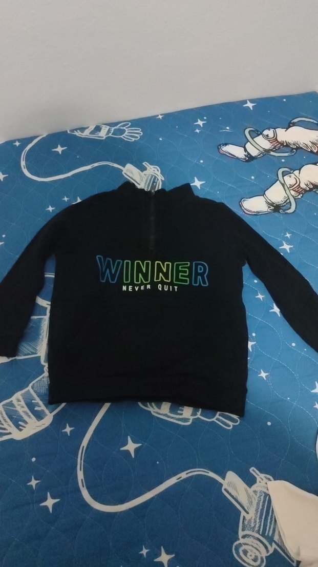 Erkekler için uzun kollu, fermuarlı boğazlı, 'WINNER NEVERQUIT' baskılı siyah sweatshirt. Yumuşak ve sıcak dokusu ile sokak modasına uygun.