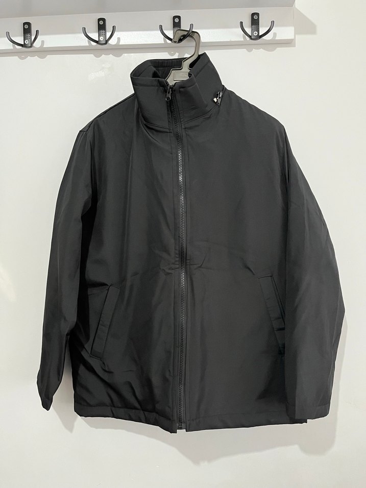 Erkekler için yüksek yakalı, uzun kollu ve normal boyda siyah fermuarlı kayak ceketi. Yumuşak fleece kumaştan, minimalist ve desensiz tasarım, dış mekan kullanımı için uygun.