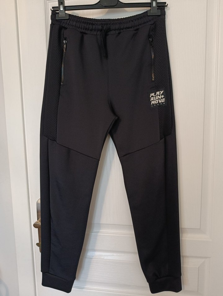 Siyah, fermuarlı cepleri olan, rahat kesim erkek outdoor eşofman.Boy 100cm.......Bel 38cm Beli lastikli esneme payı var