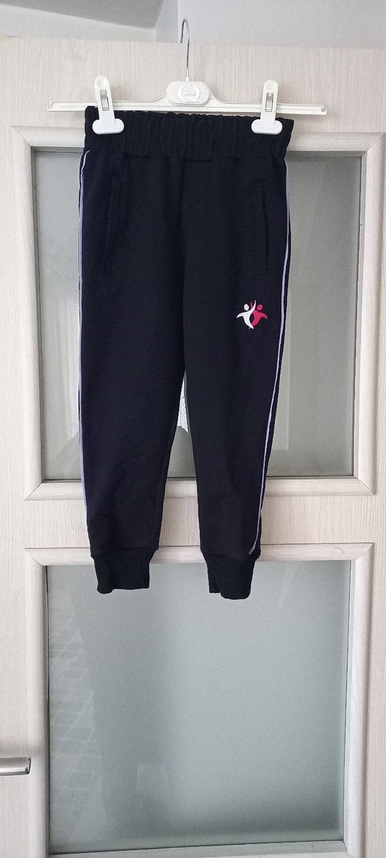 Yumuşak kumaştan, fermuarlı cepli, yan şeritli ve küçük logo detaylı siyah erkek eşofman altı.