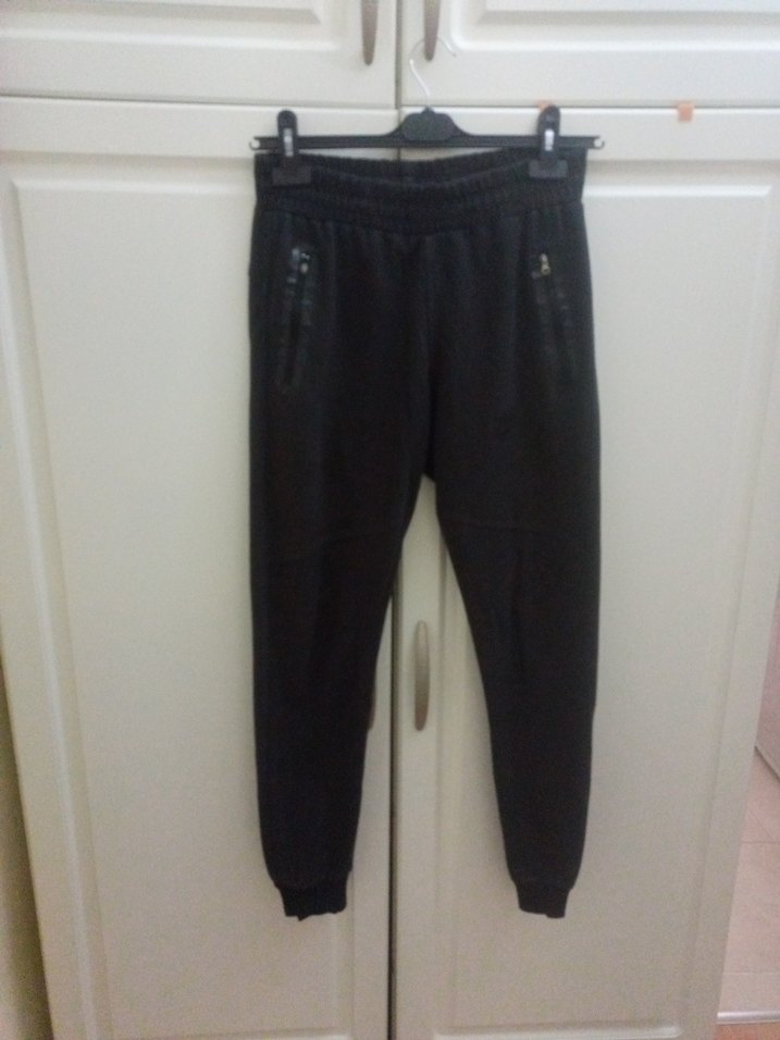 Erkek Siyah Fermuarlı Eşofman Altı Evde İşte Kullanilir Defolu