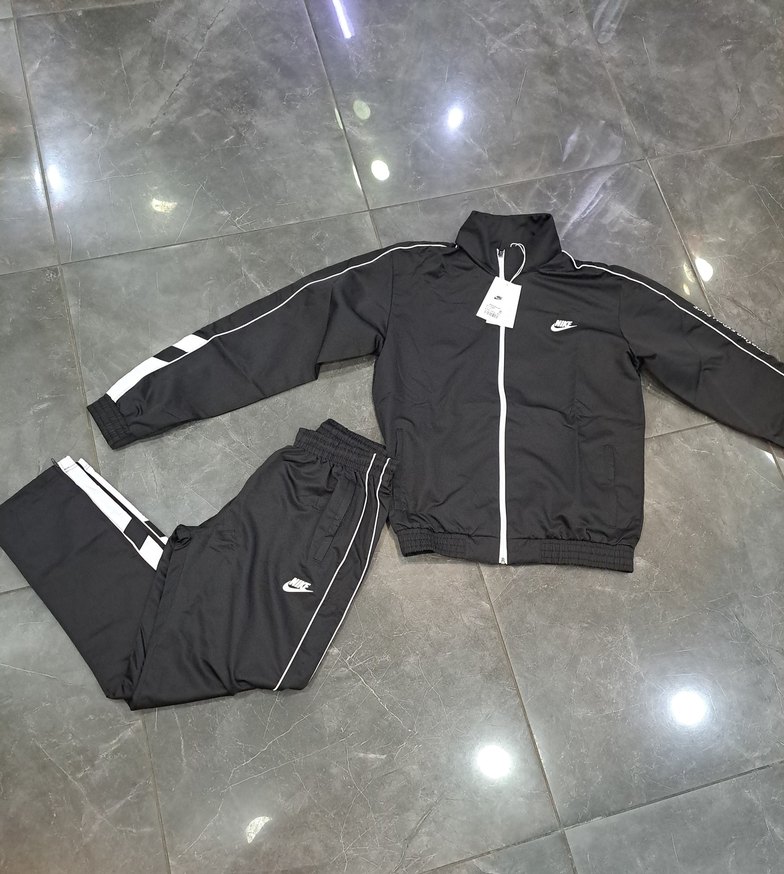 Erkekler için siyah fermuarlı eşofman takımı, regular fit ve bisiklet yaka ile. paraşüt kumaş, sade ve beyaz detaylı tasarıma sahip, rahat bir model.