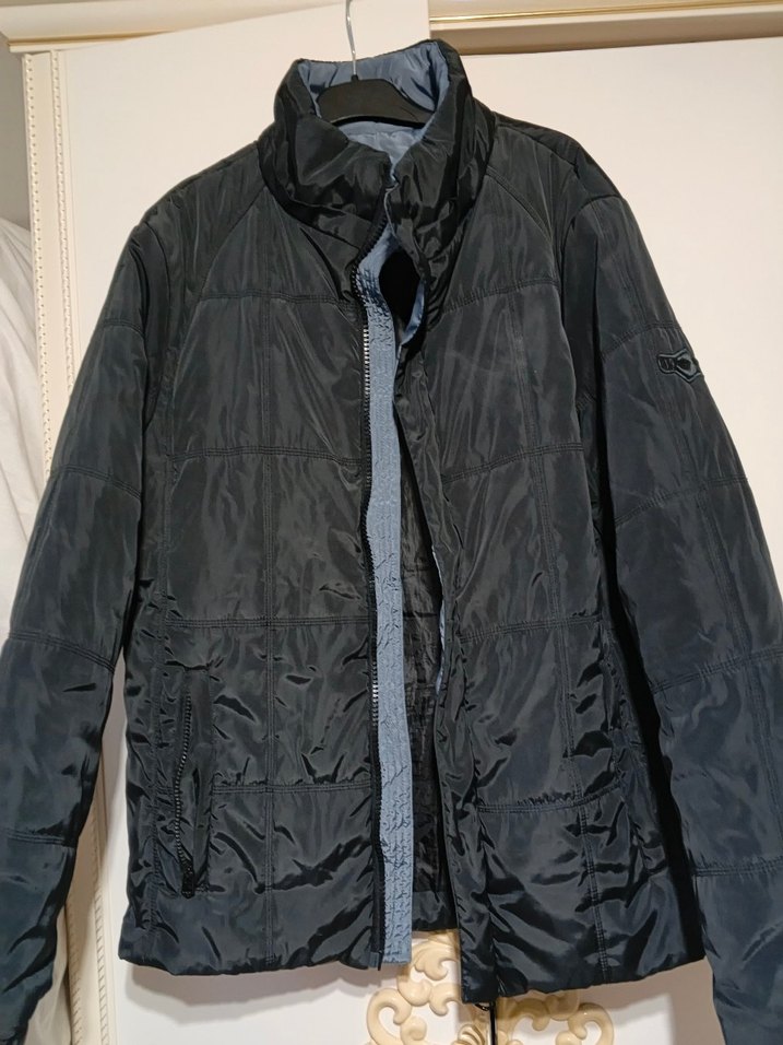 Siyah renkli, fermuarlı erkek mont, notched lapel yakaya sahip. Sentetik kumaştan, normal uzunlukta ve regular fit. Günlük sokak stili için uygun.