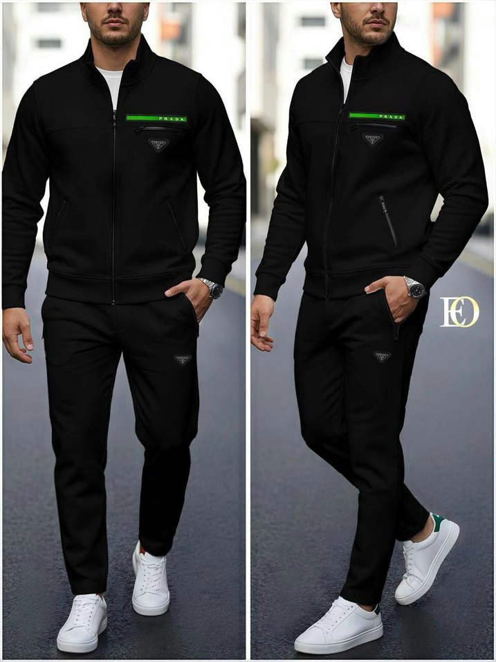 Erkekler için siyah, fermuarlı ceplere sahip, uzun kollu ve bisiklet yaka günlük rahat kesim takım. Sokak stili ve athleisure tarzında.
