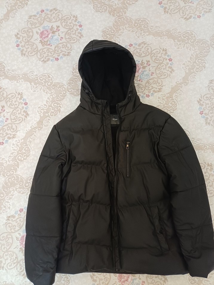 Siyah fermuarlı, yüksek yakalı,içi polarlı, kapüşonlu ve dar kesim erkek mont. Uzun kollu, yumuşak ve sıcak kumaştan, günlük kullanım için uygundur. çok az kullanıldı.