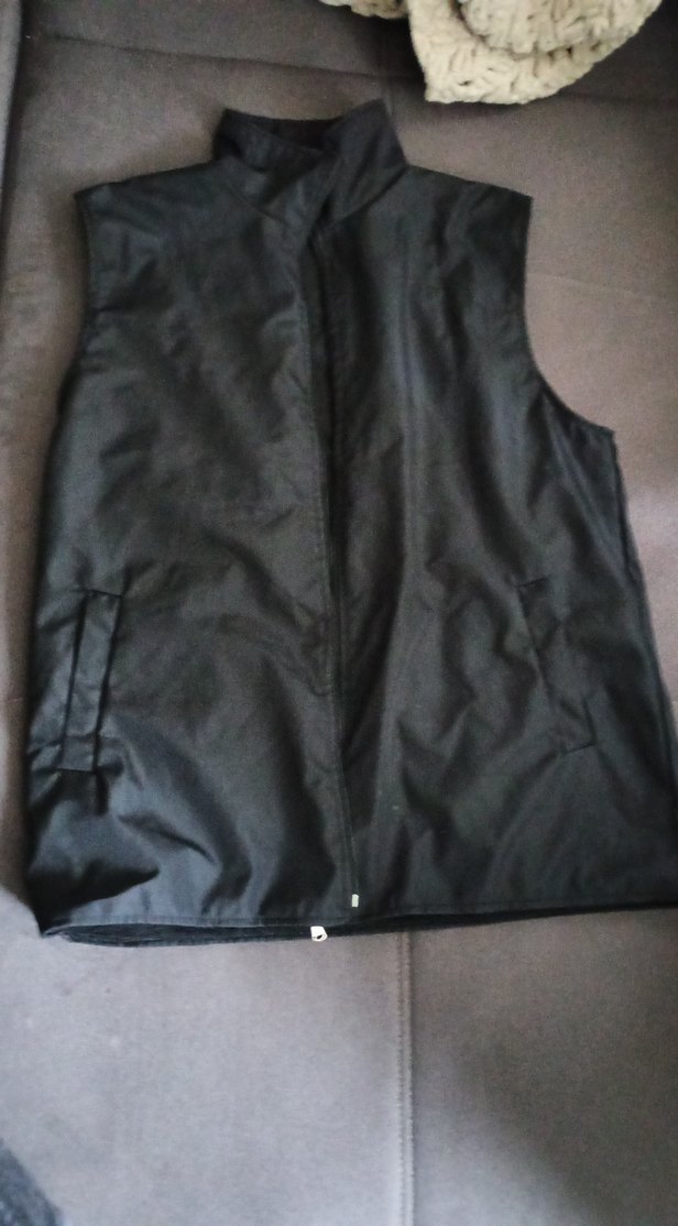 Erkekler için siyah kolsuz yelek, yüksek yakalı ve dar kesimlidir. Sentetik kumaştan yapılmış, fermuarlı ve yan ceplidir. Günlük sokak stiline uygundur.