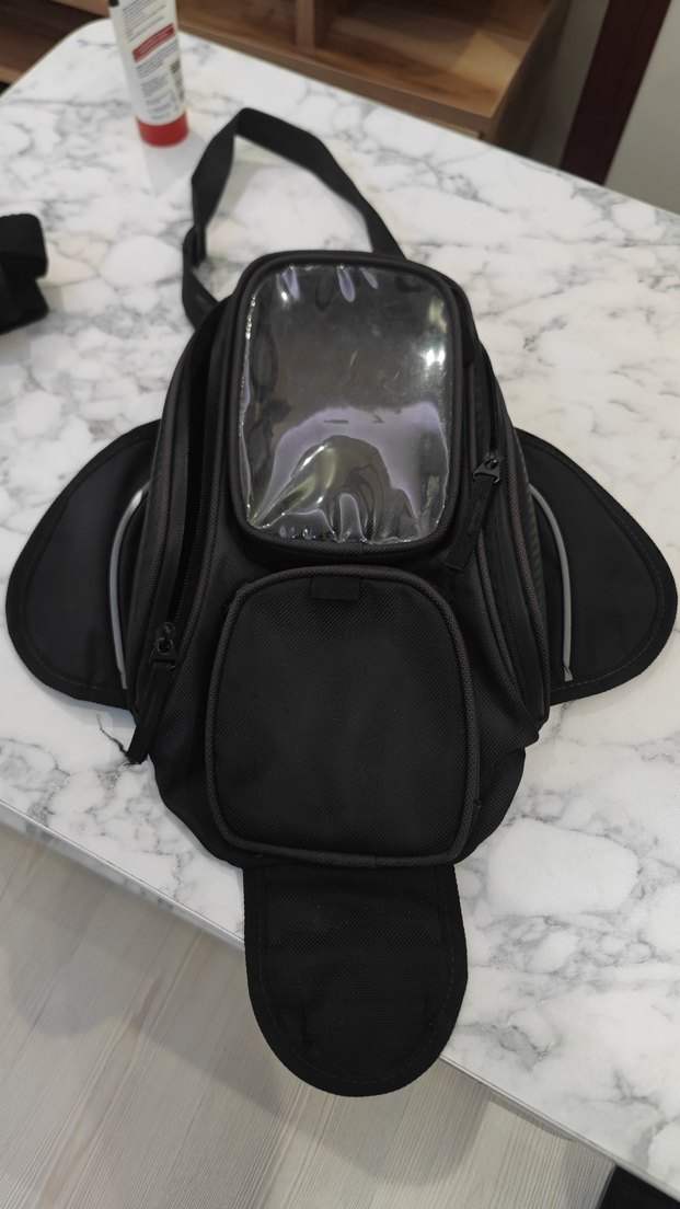 Depo üstü canta Mıknatıslı fermuarlı bir büyük göz bir telefonlar icin seffaf göz ve bir de küçük göz olmak uzere toplam 3 göz bulunmaktadır su geçirmez yağmurlu havalarda kullanilabilir
