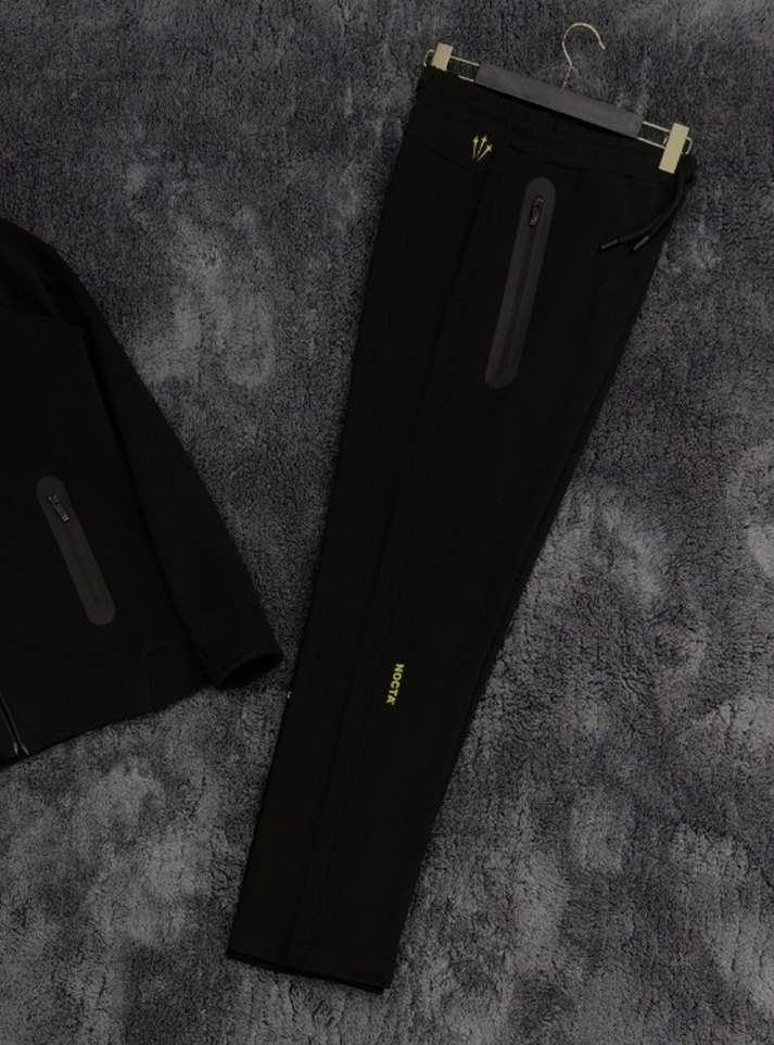 Siyah fermuarlı, regular fit erkek outdoor eşofman, dayanıklı sentetik kumaştan üretilmiş. Minimalist sokak stilinde günlük kullanım için uygun.