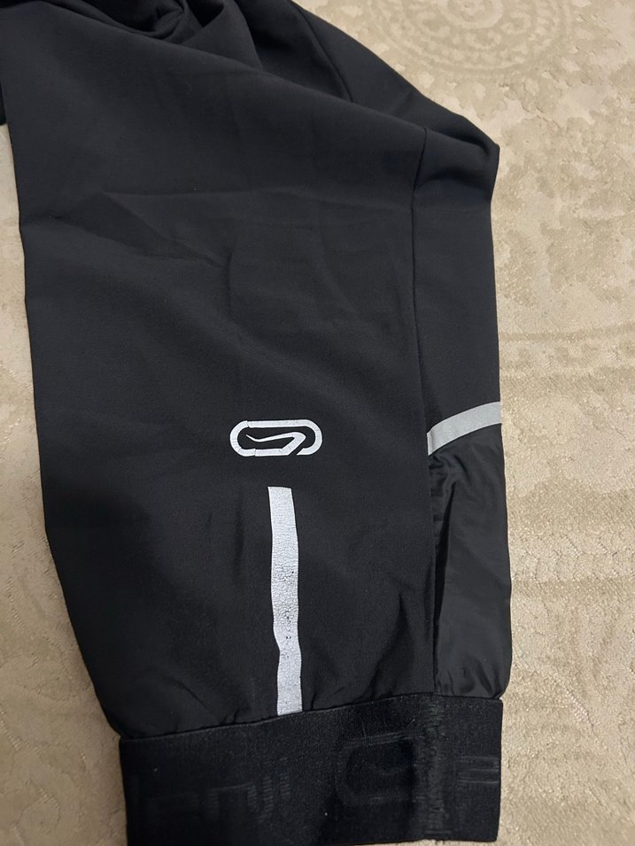 Erkekler için fermuarlı, sentetik kumaştan yapılmış siyah, dar kesim outdoor eşofman altı. Günlük rahat kullanım için uygun.