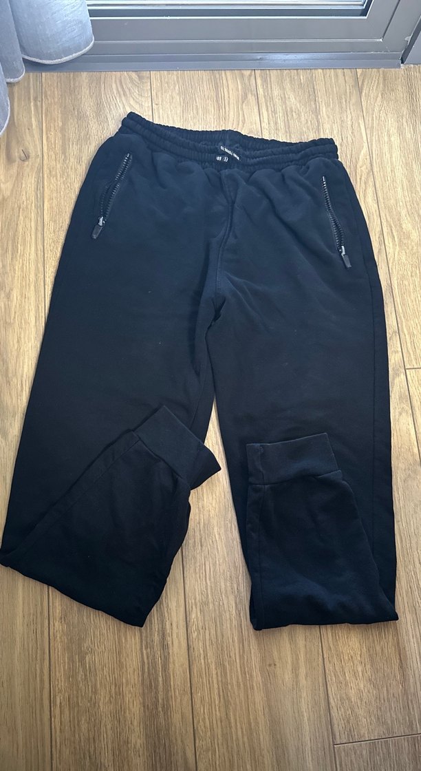 Siyah, fermuarlı cepli, yumuşak ve sıcak kumaştan yapılmış, geniş kesim outdoor eşofman. Trendy rahat sokak stili için uygundur. 12-13 yaş