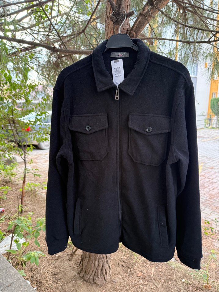 Erkekler için siyah fermuarlı ceket, notlu yaka ve yumuşak, sıcak kumaştan üretilmiştir. Normal kesim, uzun kollu ve göğüs ceplidir, dış mekan kullanımı için uygundur.