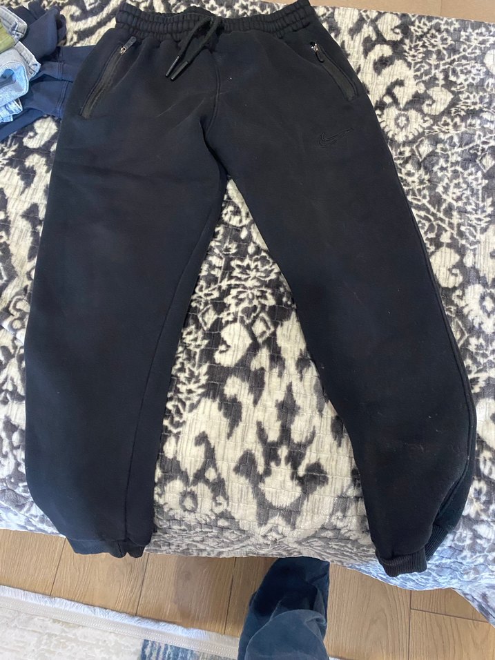 Kadın yâda erkek siyah, fermuarlı cepleri olan, normal midi boyda ve rahat kesimde, yumuşak ve sıcak kumaştan eşofman altı.