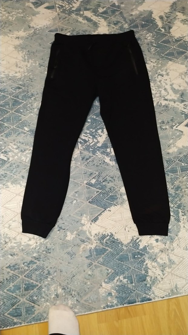 Siyah, fermuarlı cepleri olan, rahat kesim erkek eşofman, yumuşak ve sıcak kumaştan, günlük sokak stili için uygundur.