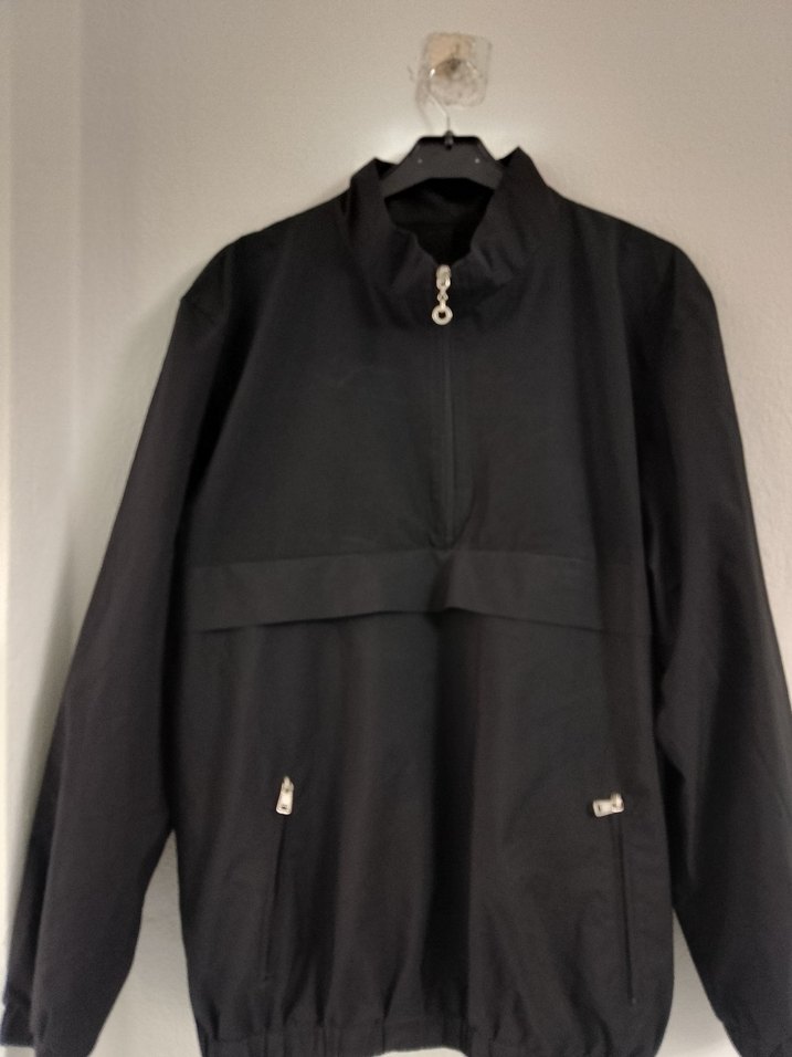 Erkek siyah fermuarlı rüzgarlık, yüksek yakalı ve uzun kolludur. Rahat kesimi ve yumuşak kumaşıyla günlük kullanıma uygundur.