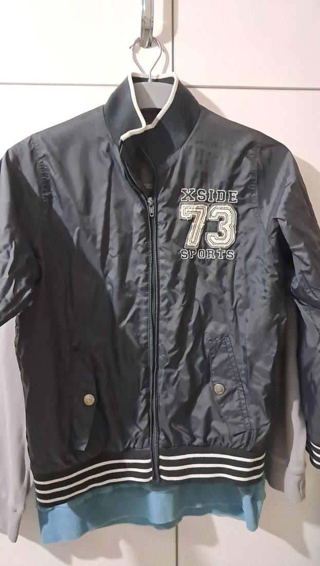 Fermuarlı ve yuvarlak yakalı, parlak siyah sentetik kumaştan yapılmış, baskılı detaylı, dar kesim erkek çocuk ceketi. Çizgili ribana manşet ve etek ucu bulunur. hiç bir kusuru yok,yalnız baza altından ütüsü yok