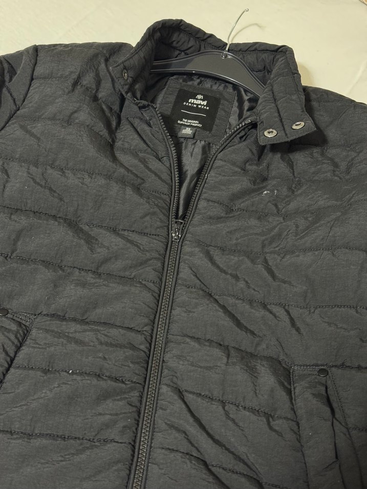 Erkek siyah fermuarlı street style mont, çıtçıtlı yaka, uzun kollu ve normal midi boyda, sentetik kumaştan yapılmıştır. Günlük kullanım için uygundur.