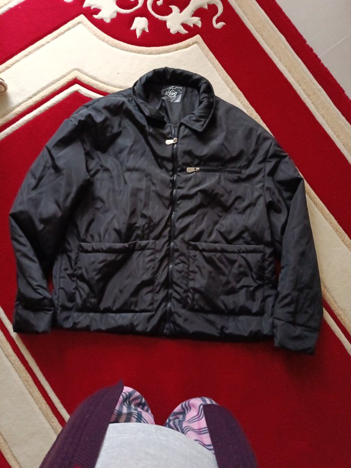 Fermuarlı ve cep detaylı, siyah renkli, uzun kollu ve kesimli erkek mont . Yumuşak kumaştan, günlük sokak stili için uygundur.