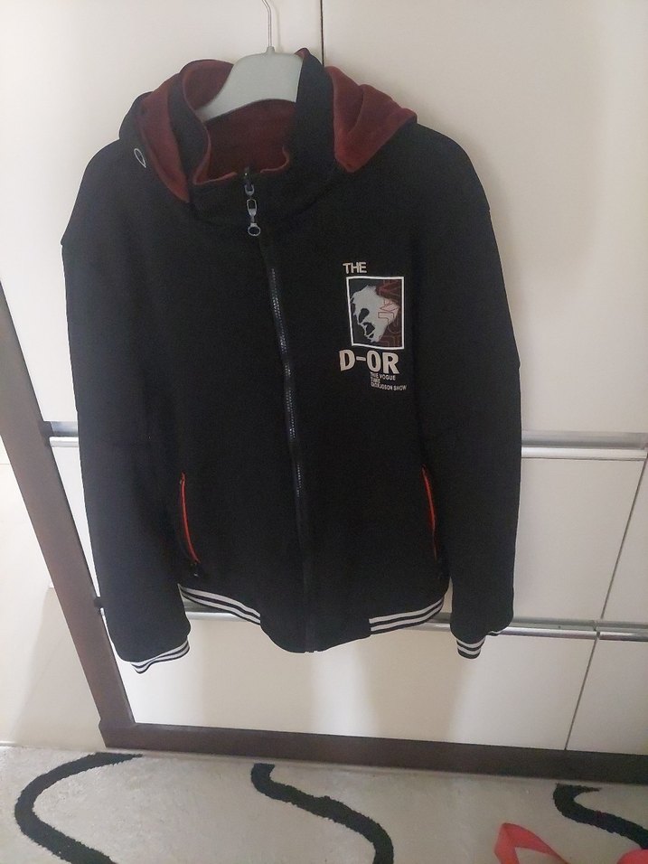 Erkek Siyah Fermuarlı Sweatshirt çift taraflı kışlık kalın
