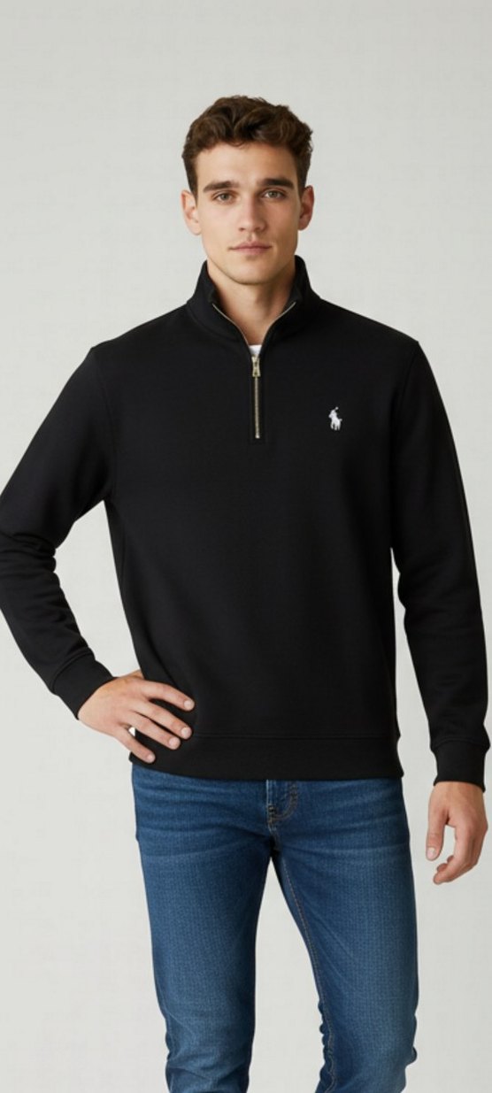 Erkekler için siyah, yarım fermuarlı, yüksek yakalı ve fitted kesime sahip sweatshirt. Yumuşak fleece kumaştan, günlük kullanıma uygun rahat ve şık sokak stili sunar. S,M,L,XL,2XL.