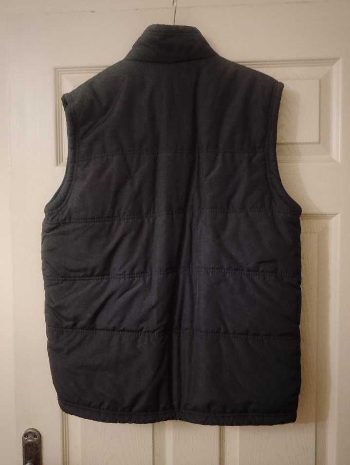 Bu erkek siyah yelek, yüksek yakalı ve fermuarlıdır. Vücuda oturan kesimi ve yumuşak, sıcak kumaşı vardır. Kolsuz ve günlük kullanım için uygundur.