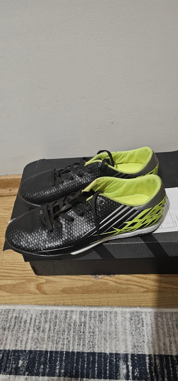 Siyah erkek futbol ayakkabıları kauçuk tabanlı, velcro bantlı ve çağdaş tasarımlı. Spor ve athleisure tarzı için uygundur. ⚽