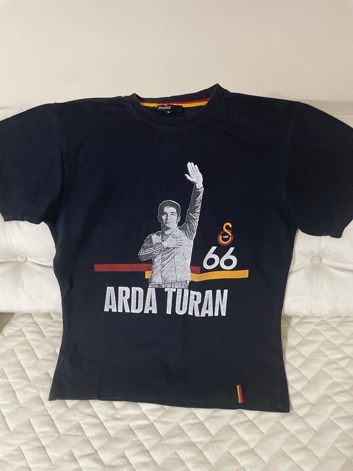 Siyah Galatasaray STORE dan alınan pamuklu erkek tişörtü, bol kesim, bisiklet yaka ve kısa kollu. Arda Turan ve 66 numaralı baskı detaylı. Trendy günlük sokak stili için uygun.