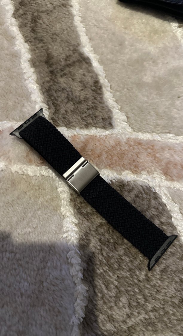 Erkekler için siyah, rahat dokulu, koyu goth tarzında metal tokalı saat kayışı. ⌚ apple Watch 45mm