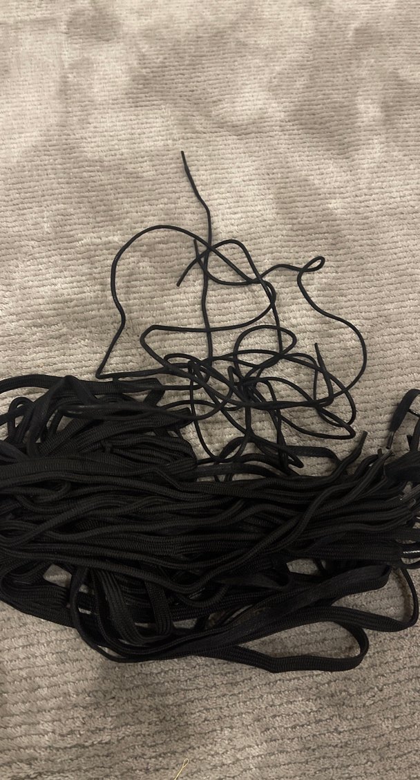 Gotik tarzda siyah erkek ayakkabı bağcıkları, grunge ve punk altkültürlere uygun, dayanıklı ve koyu renkte. 14 adet en uzunu 1,70cm