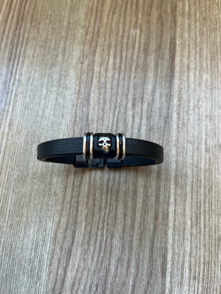 Kafatası detaylı siyah gotik deri bileklik, rock ve punk tarzına uygun koyu ve cesur bir stil sunar.