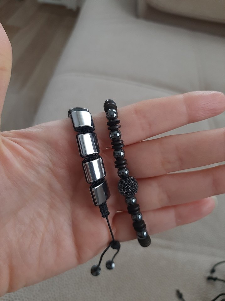 İki adet siyah erkek bileklik, gotik tarzda, koyu boncuklar ve minimalist tasarımla. Rock punk havası için uygun.2 bileklik hediye gelmisti iyi durumda iade yoktur